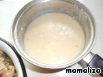 - Бульон процедить и варить, выпаривая, до объема 1,5 стакана. Приготовить густой соус из сливочного масла, муки и процеженного бульона. Добавить соль, перец и шалфей.