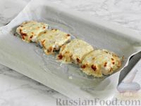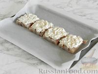 - Выложить на рыбу сырную массу и равномерно распределить ее.