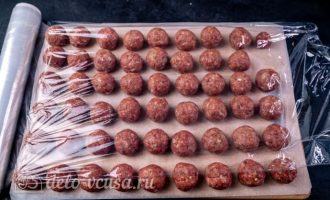 - Накрываем фрикадельки пищевой пленкой и убираем на 2 часа в холодильник.