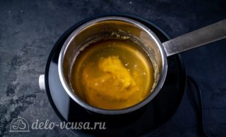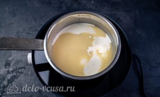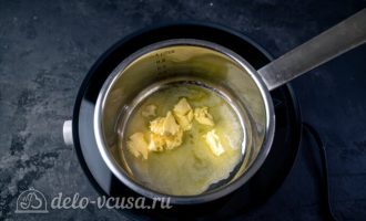 - Пока фрикадельки томятся в духовке, приготовим соус. Добавляем в сотейник немного растительного масла и 40 г. сливочного. Благодаря растительному сливочное не будет гореть.