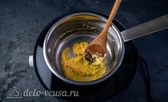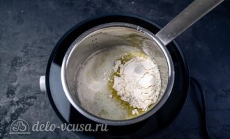 - Когда сливочное масло растопится добавляем 40 г. пшеничной муки.