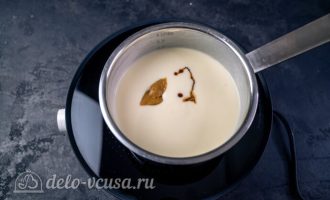 - Добавляем в соус 150 мл. жирных сливок и помешиваем до однородного состояния, чтобы сливки не свернулись.