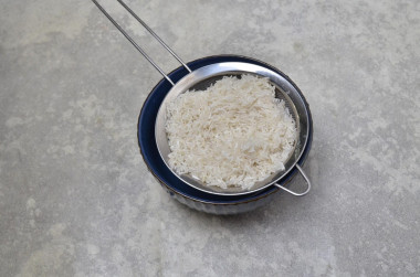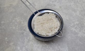- Затем слейте с риса воду, а саму крупу откиньте на сито и оставьте, чтобы стекла вся вода.