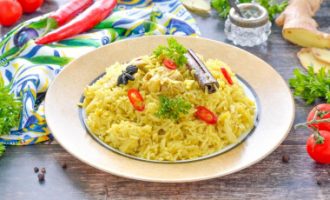 - Подавайте бириани к столу. К нему хорошо подойдет соус на основе йогурта и салат из свежих помидоров.