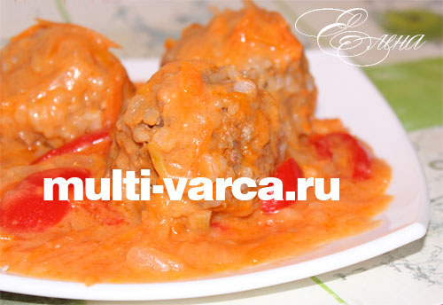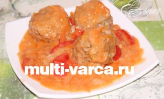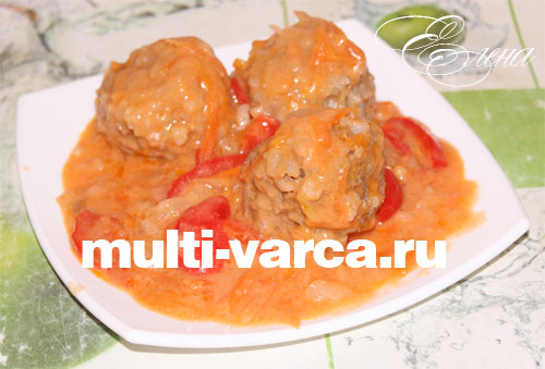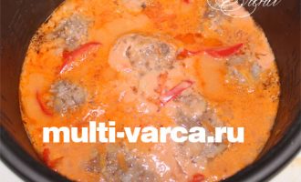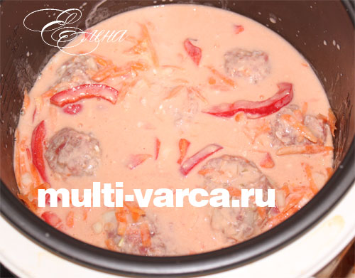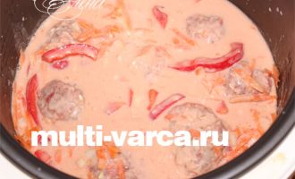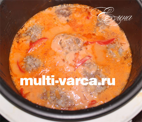 - Ежики выкладываем в мультиварку к овощам и заливаем соусом.