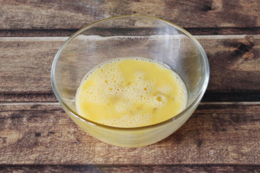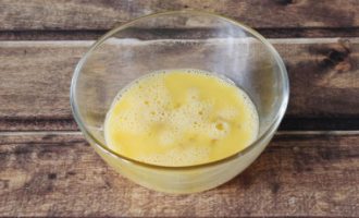 - Яйца вбейте в маленькую миску. Взболтайте яйца вилкой.