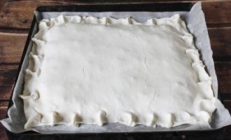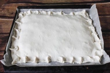 - Сверху накройте вторым листом теста и плотно защипите края.