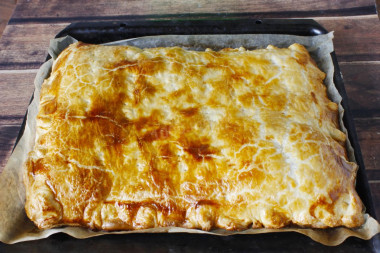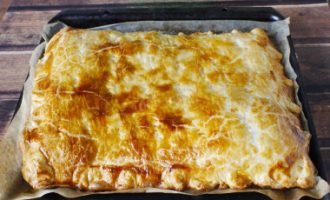 - Выпекайте пирог в духовке при 180 градусов С около 30 минут до румяности и полной готовности. Время и температура указаны приблизительно, ориентируйтесь на особенности работы вашей техники.